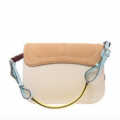 【包邮包税】Hermès 爱马仕 女士白色拼色翻盖单肩包斜挎包