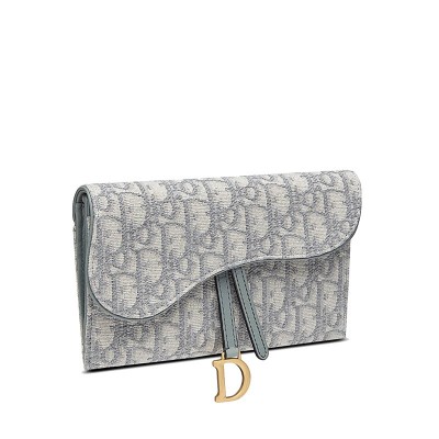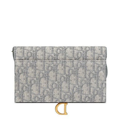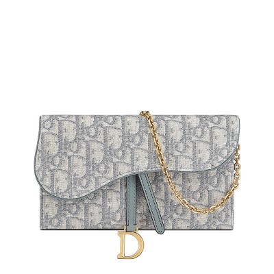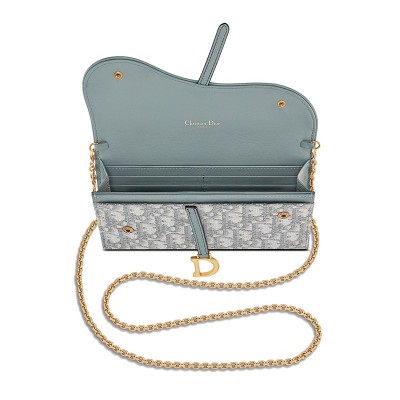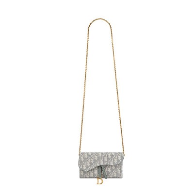 DIOR/迪奥 2021秋冬新款 LADY DIOR系列 女士灰色老花帆布链条D徽标单肩斜挎钱包S5614CTZQ_M932